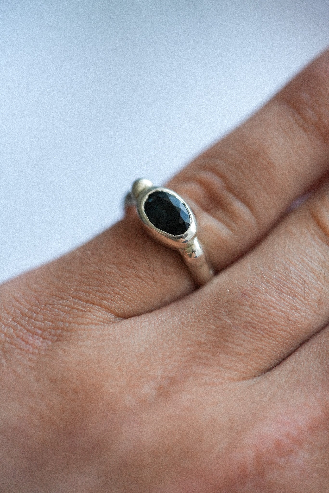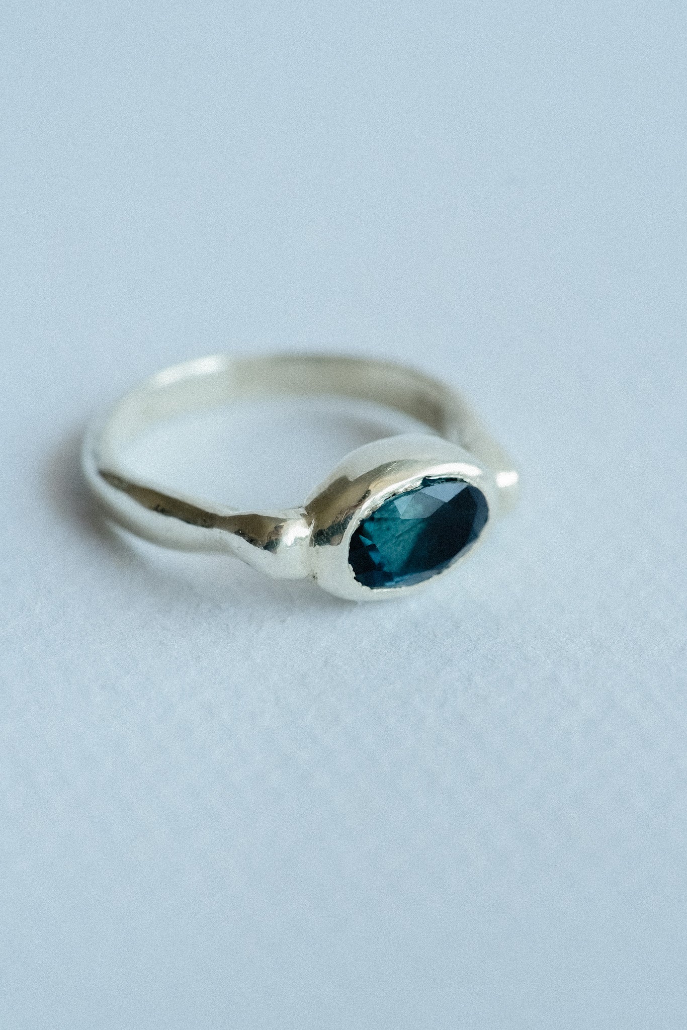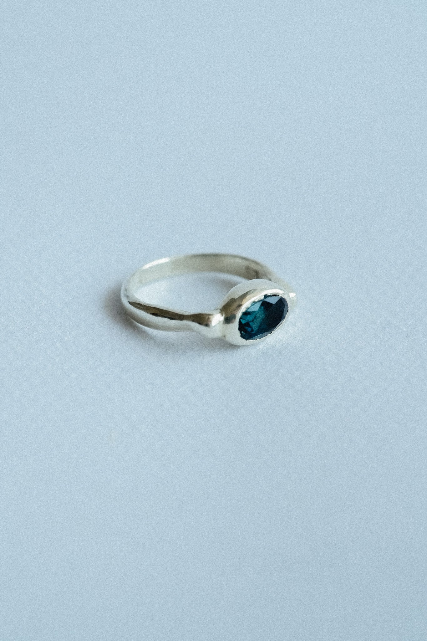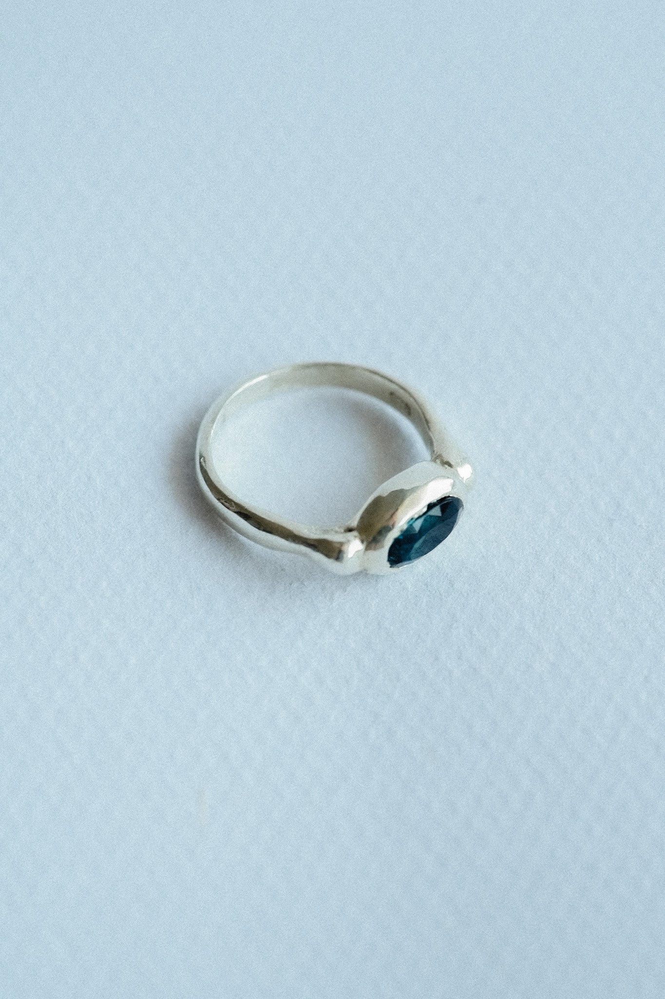Blue is a silver ring set with a deep teal stone in bezel style.
