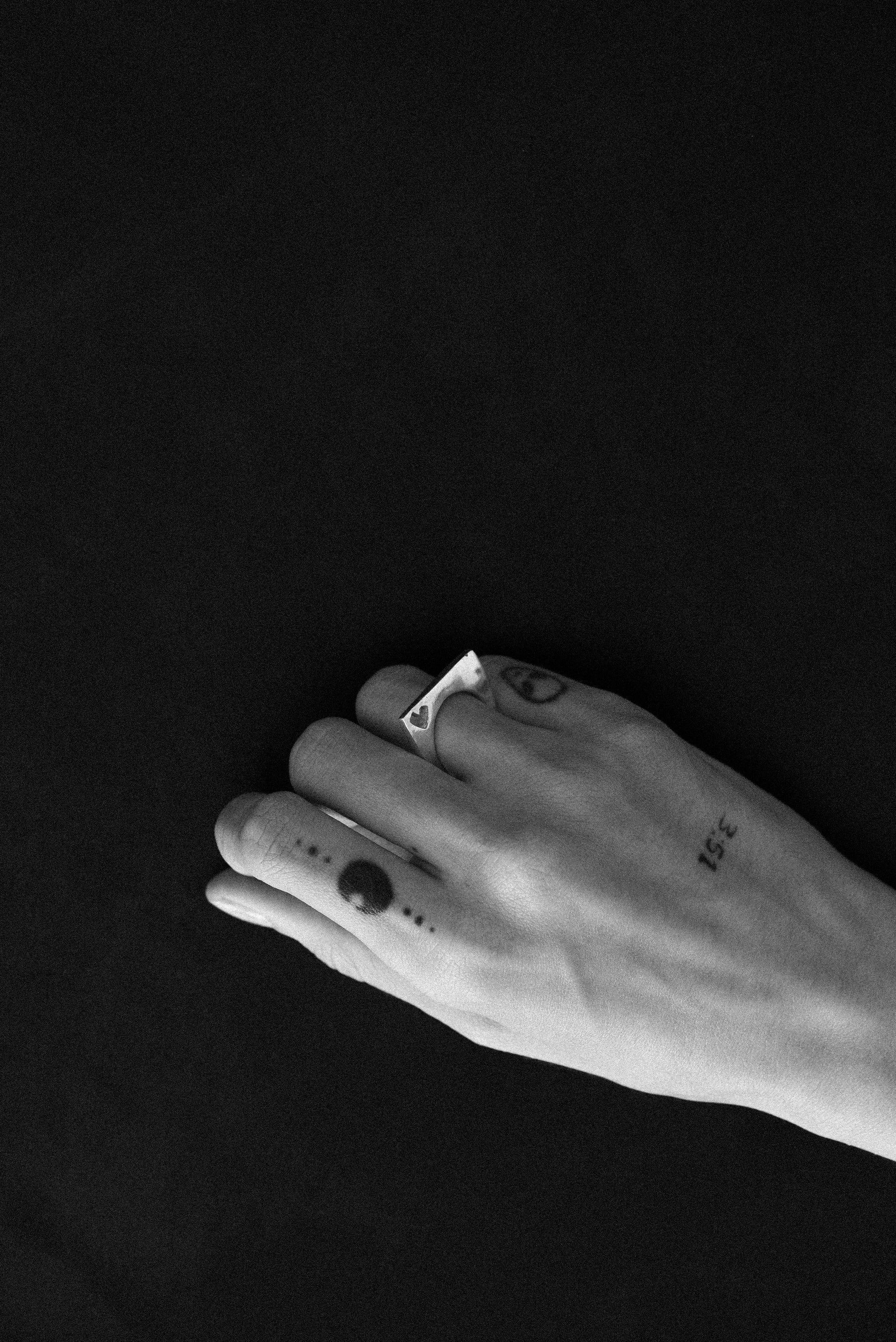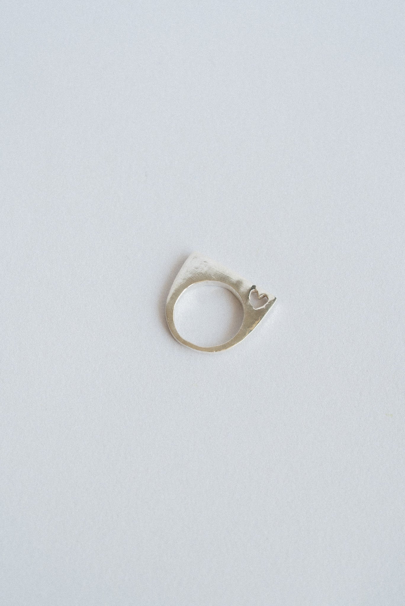 Contemporary ring with a rectangular silhouette and a cut-out heart.